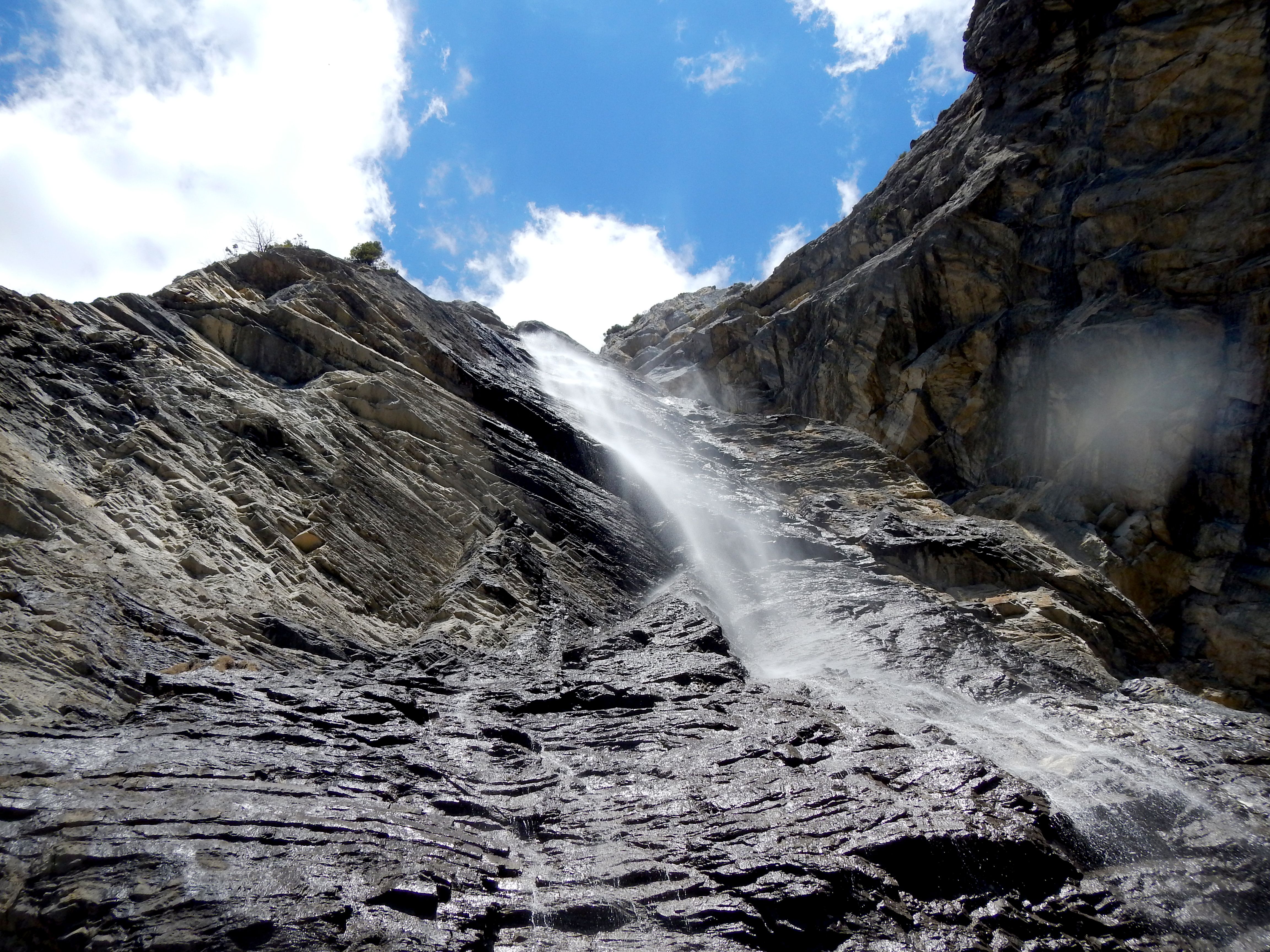 La sortie est fastidieuse, bien remonter rive gauche juste avant les lignes électriques, puis rejoindre le refuge des fonds.